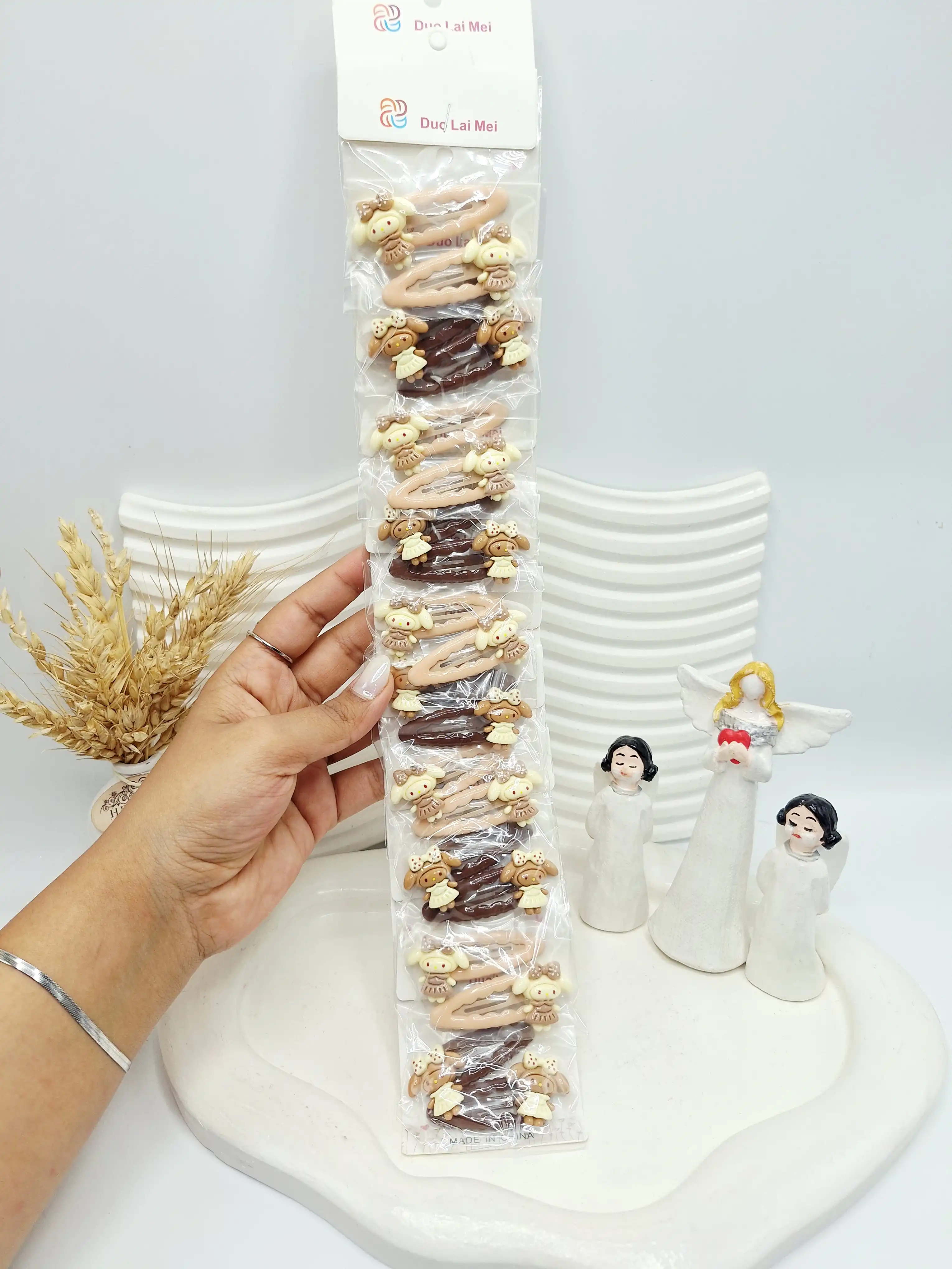 ست 10 تایی کش و پنس مو دخترانه کرومی رنگ کرم