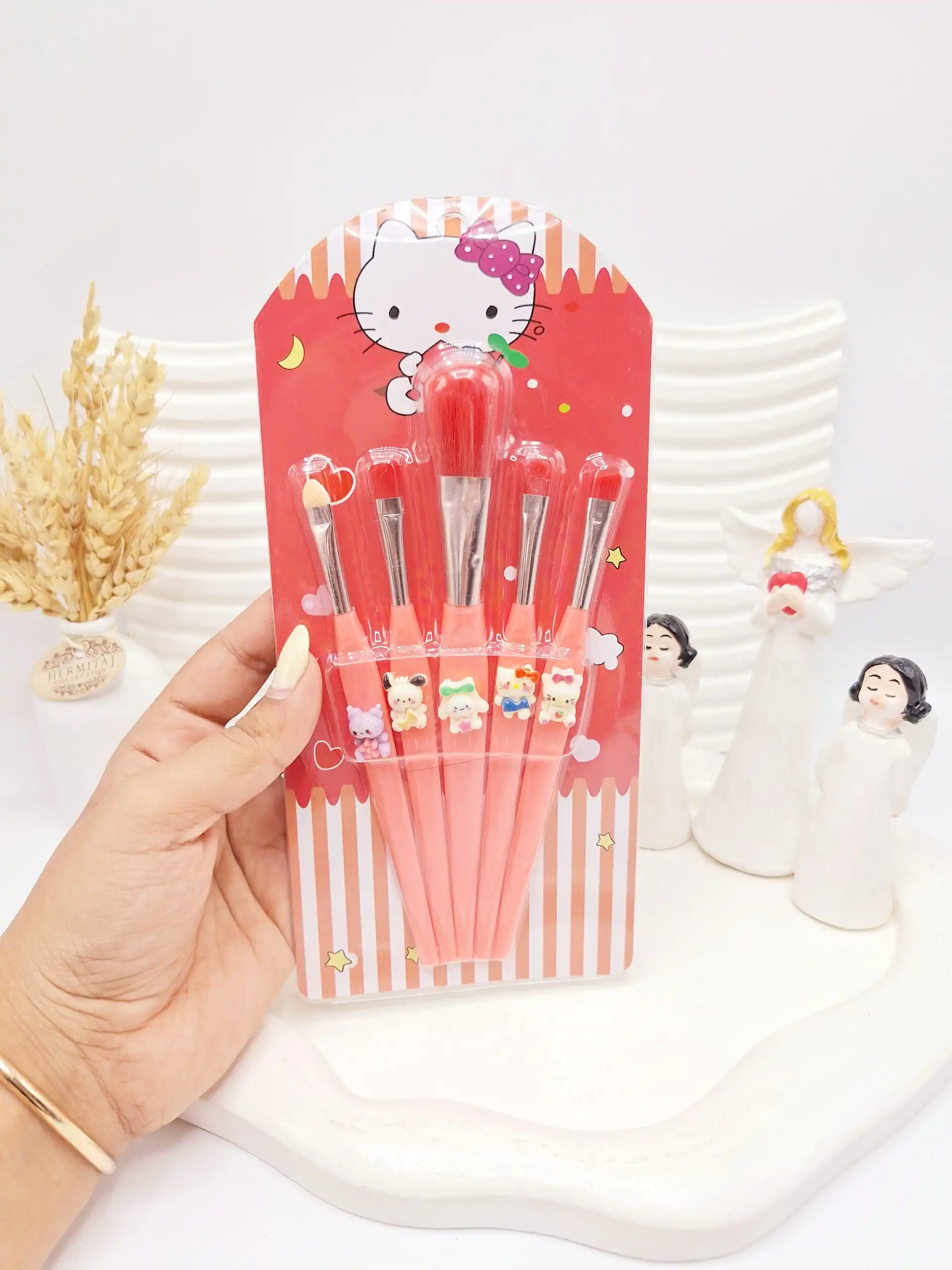 ست براش 5 تیکه کرومی مدل کیتی (رنگ سرخابی) کد 0154