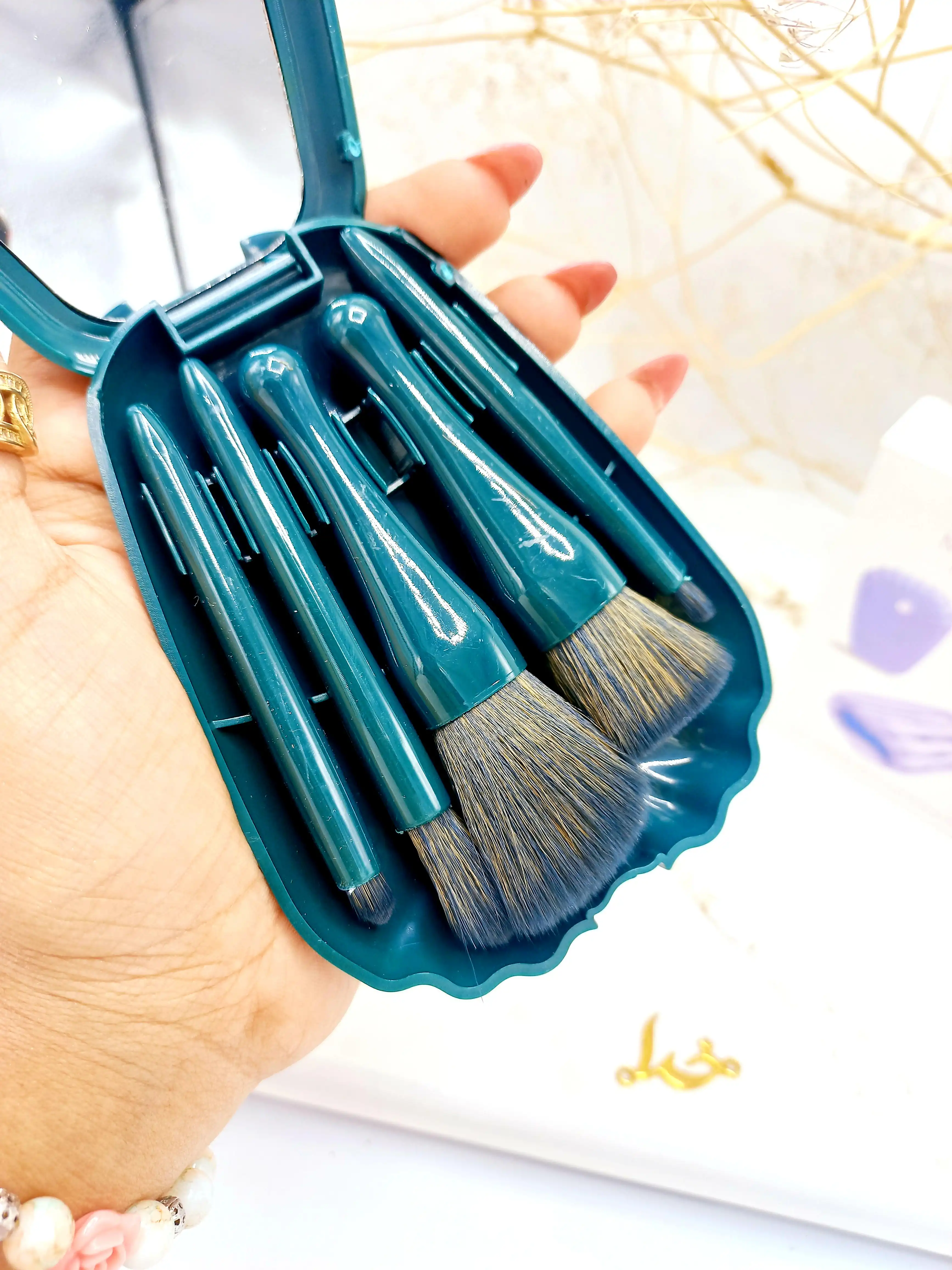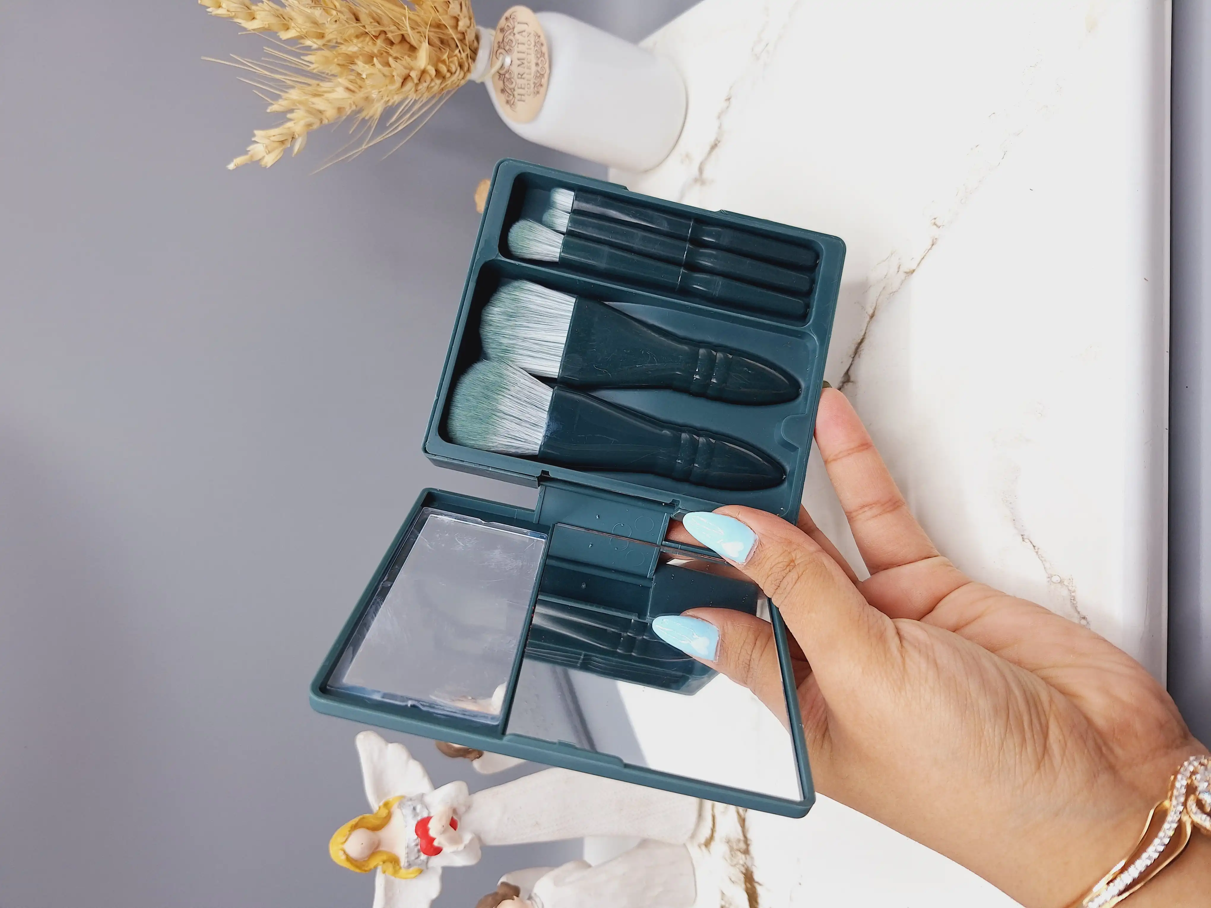 ست براش 5 تیکه باکس دار صدفی آینه دار سبز