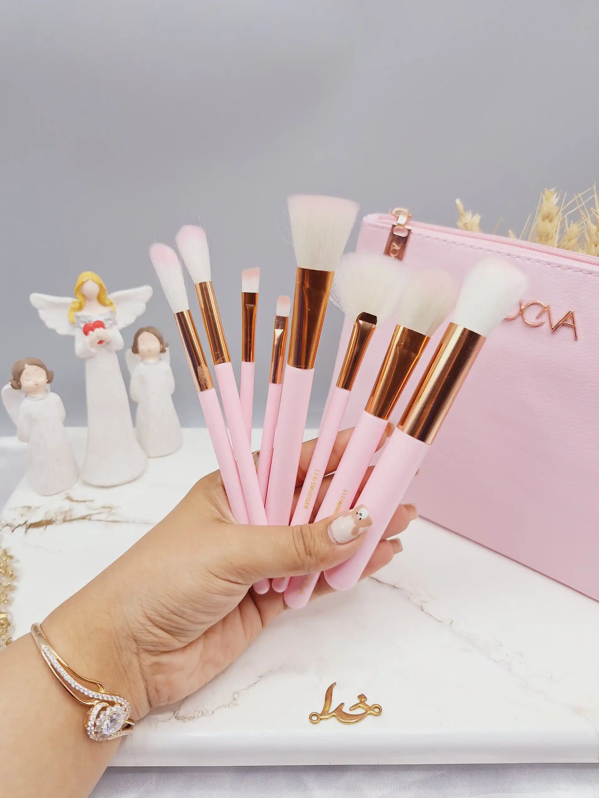 ست براش صورتی اصل 15 عددی لاکچری زووا با کیف چرمی