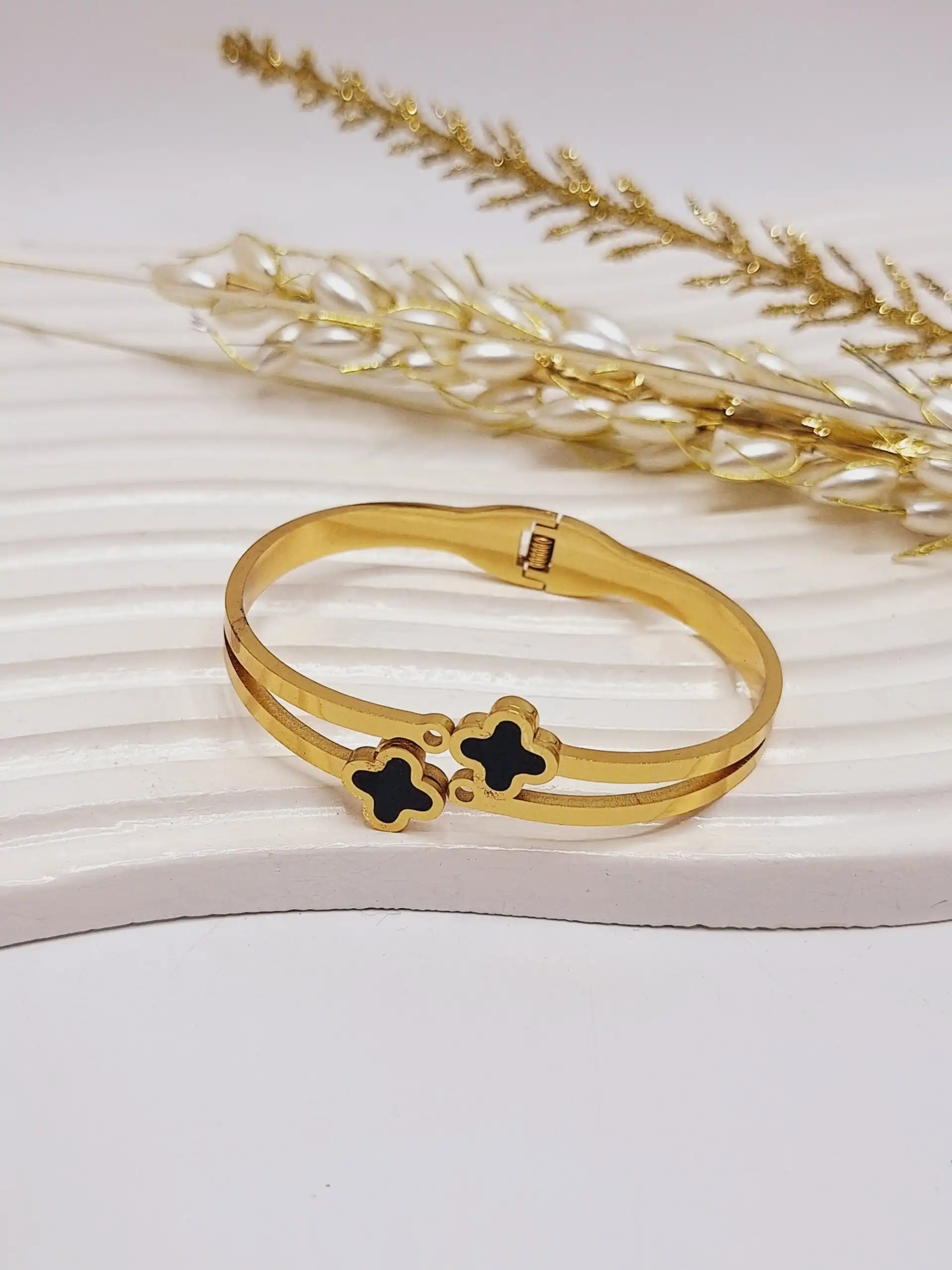 دستبند طلایی طرح 2 ونکلیف مشکی