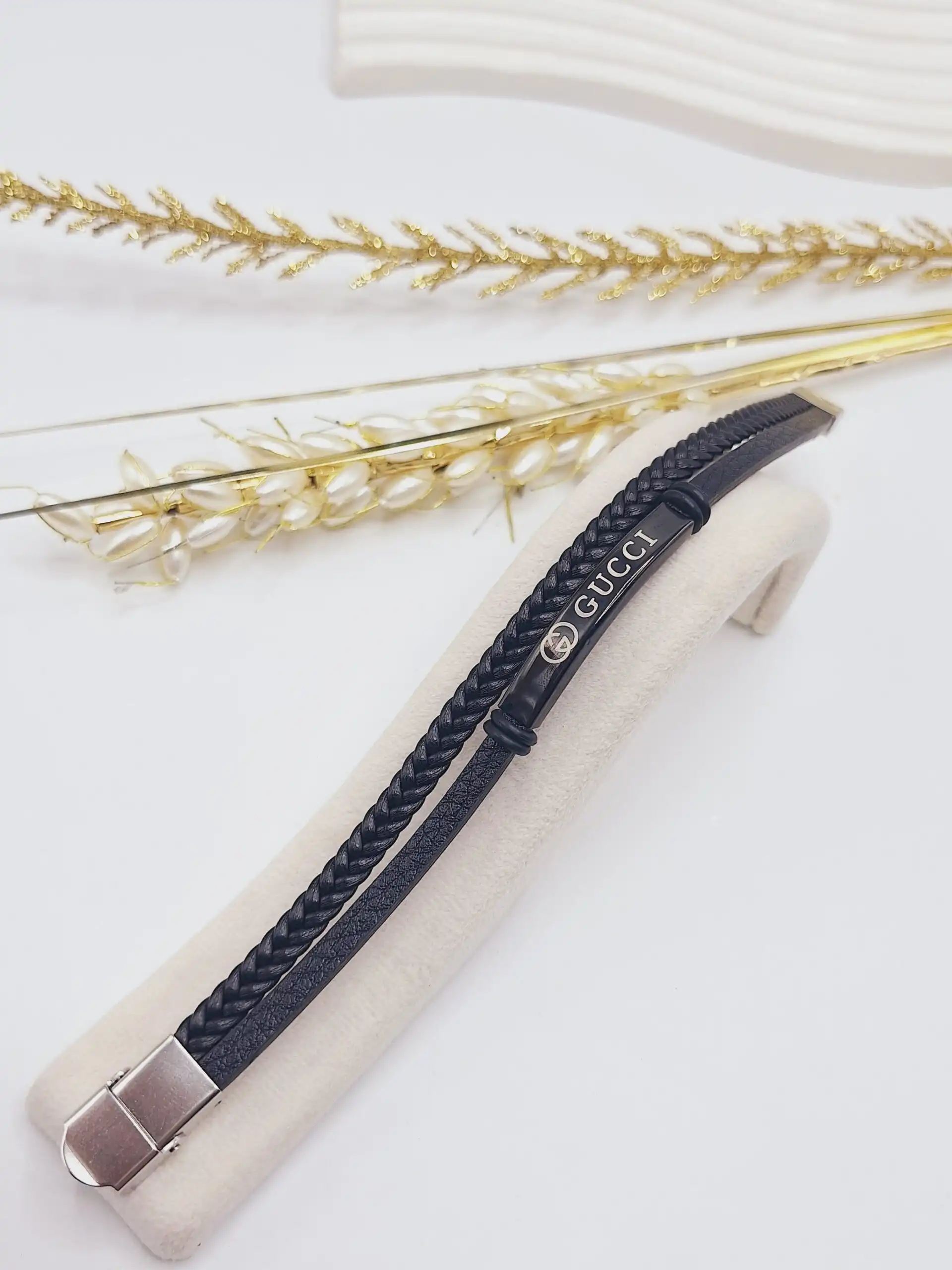 دستبند چرمی مردانه GUCCI مشکی
