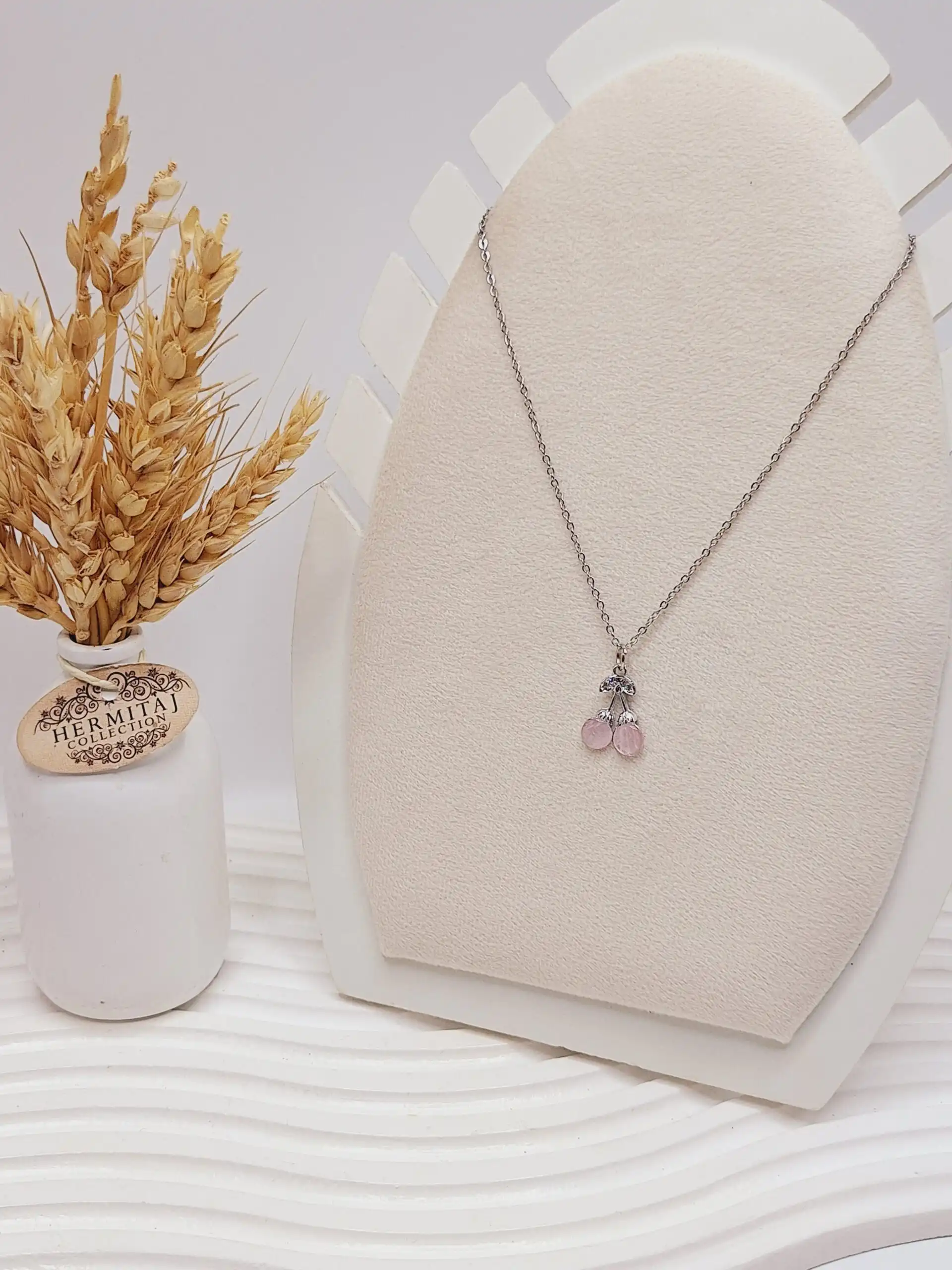 گردنبند جواهری طرح گیلاسی رنگ صورتی
