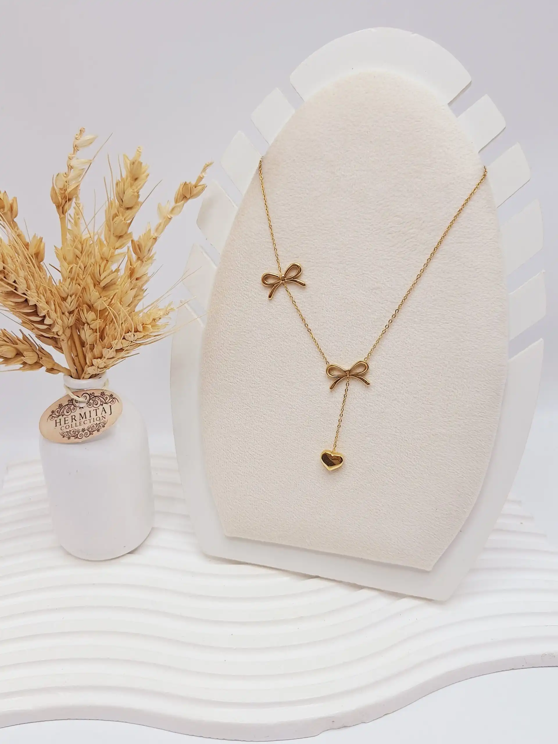 گردنبند طرح پاپیون و آویز دار قلب طلایی