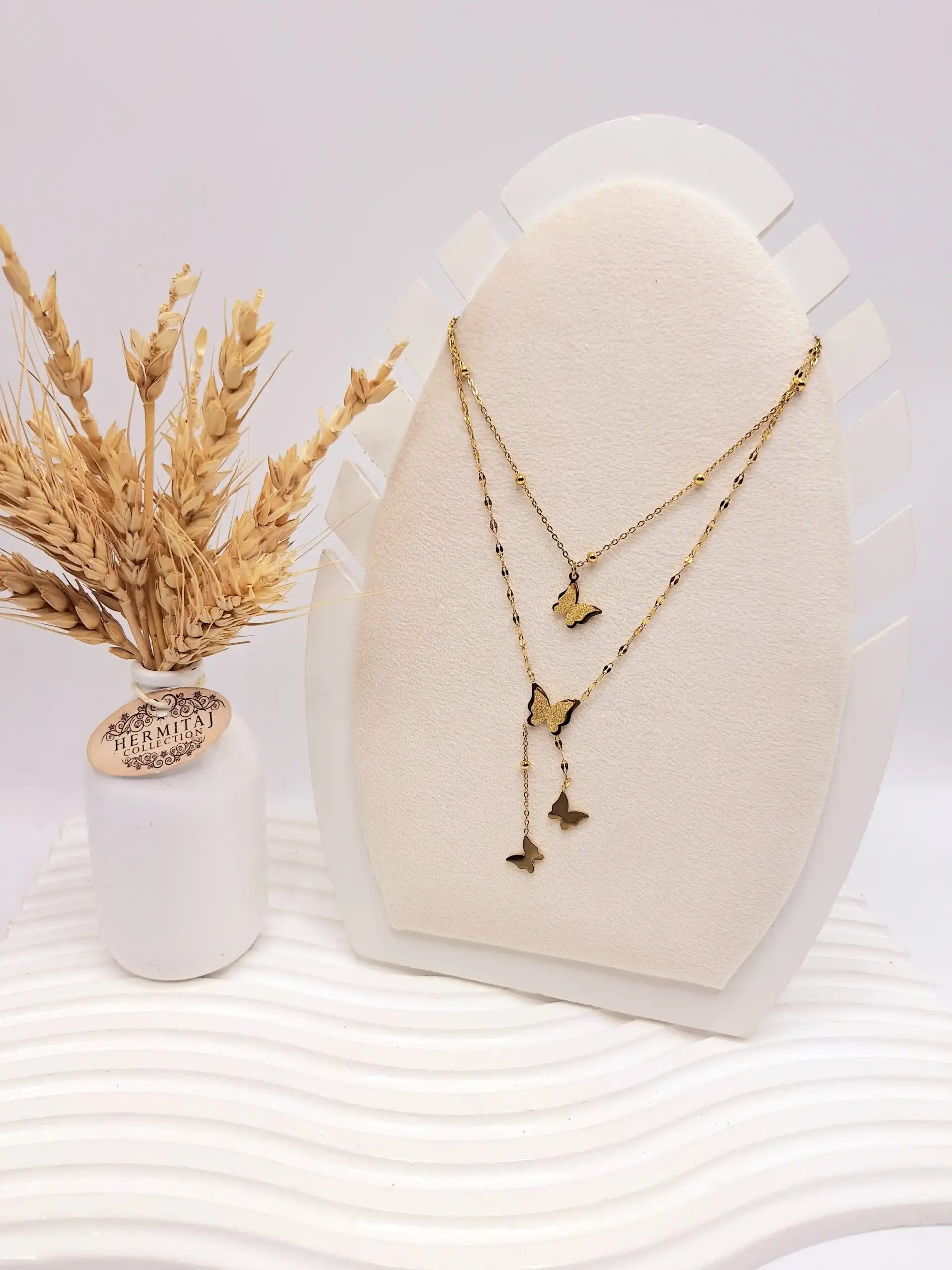 گردنبند آبشاری 2 لاین پروانه طلایی