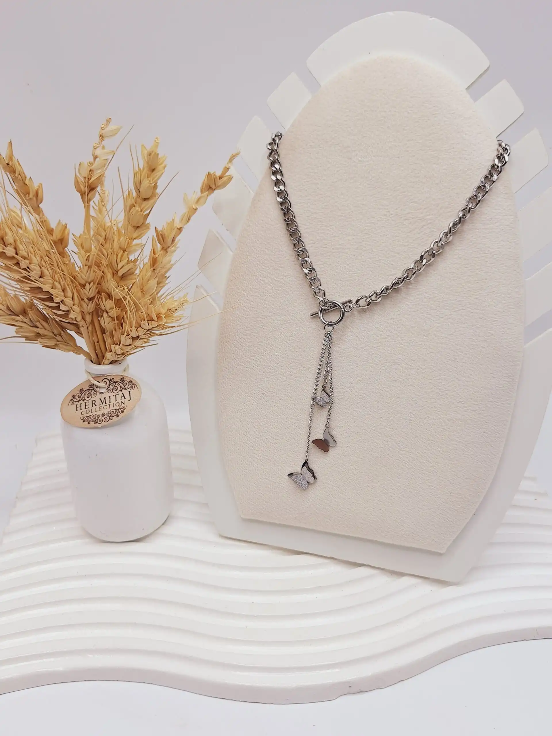 گردنبند زنجیری مدل قفل پروانه نقره ای