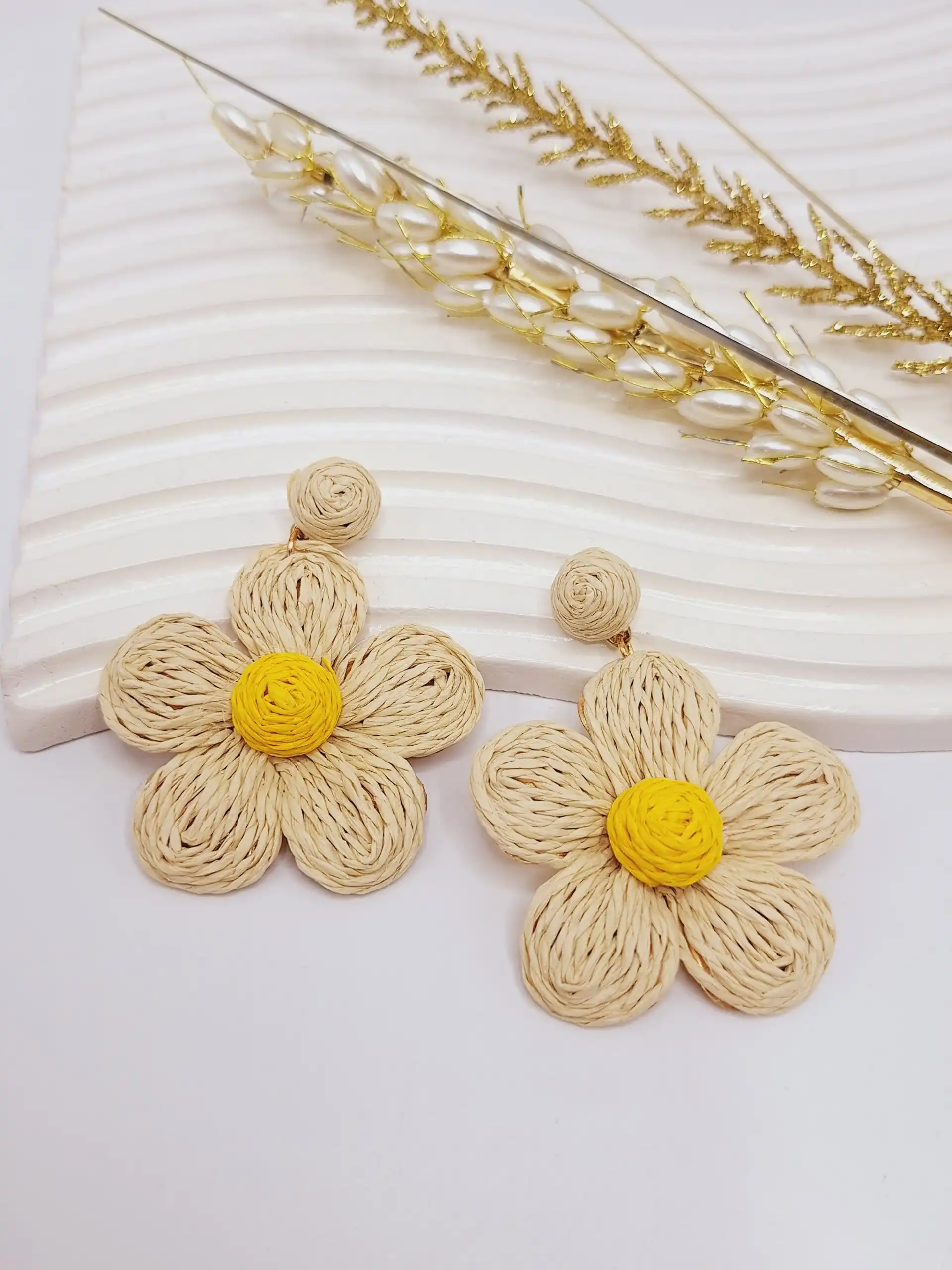 گوشواره حصیری مدل گل طرح دوم