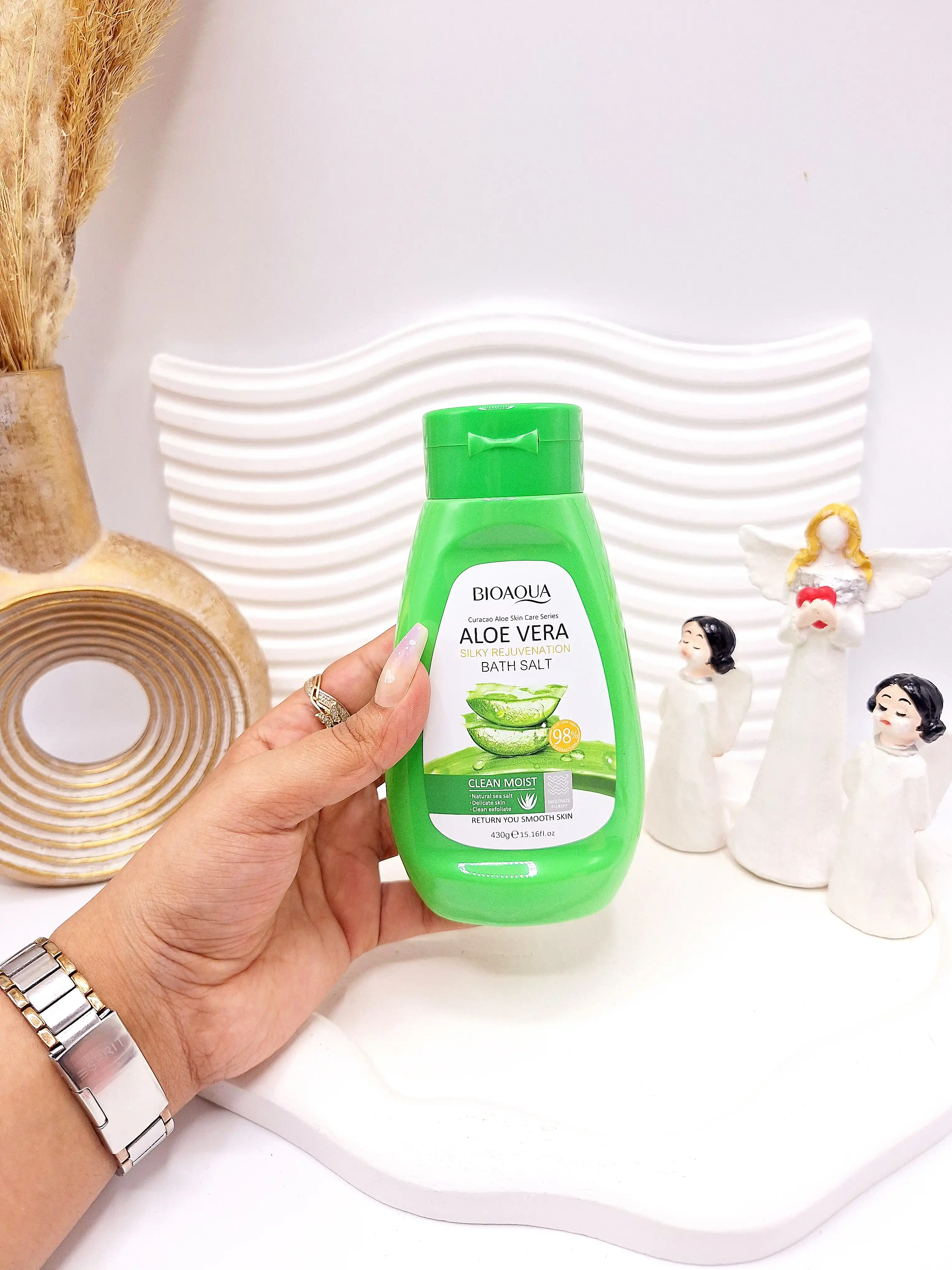 نمک بدن آلوئه ورا بیوآکوا 430 گرم کد bay34441 برای از بین بردن پوست مرغی و روشن کننده نقاط حساس