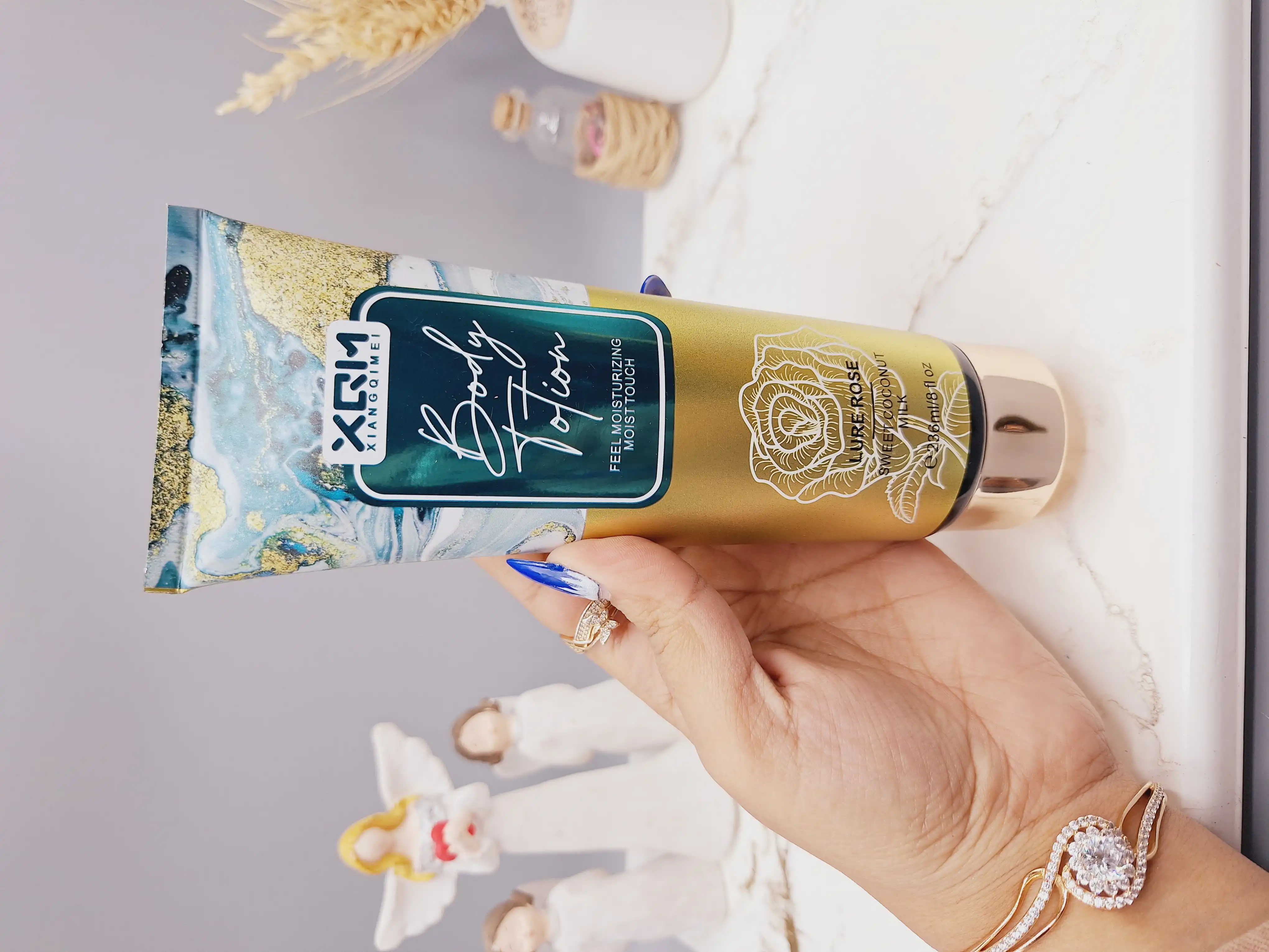 لوسیون بدن XQM حاوی ترکیبات مرطوب کننده و نرم کننده رایحه کارامل و نارگیل کد 0407
