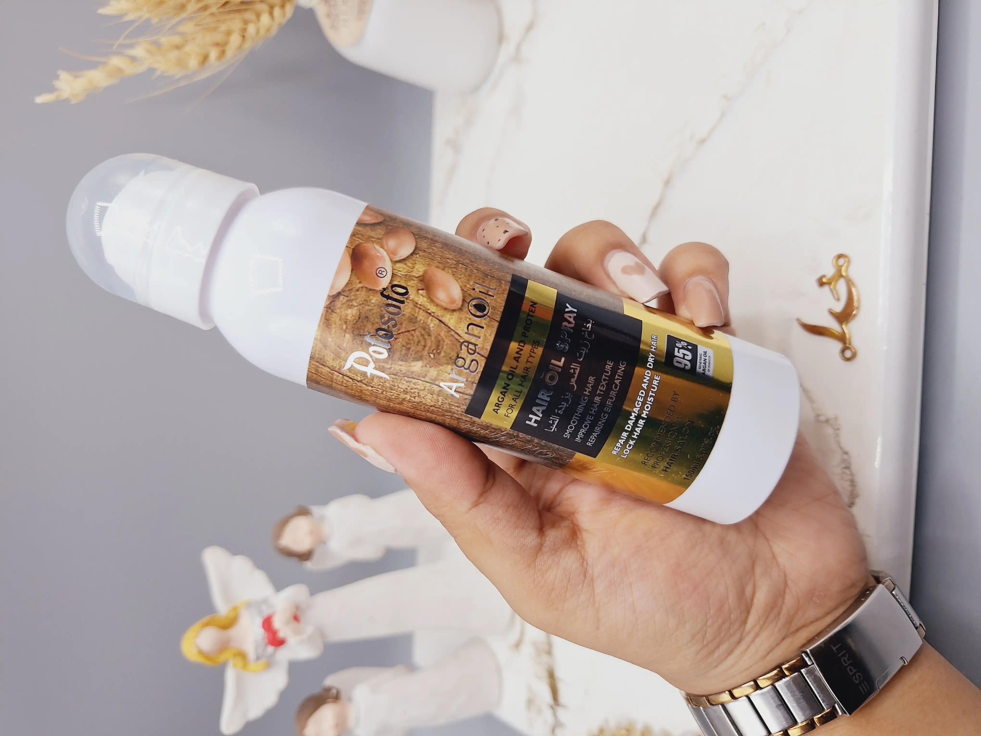 اسپری مو آرگان شی باتر مناسب برای درخشان کننده و صاف کنندگی مو برند Potosolo کد p-8005