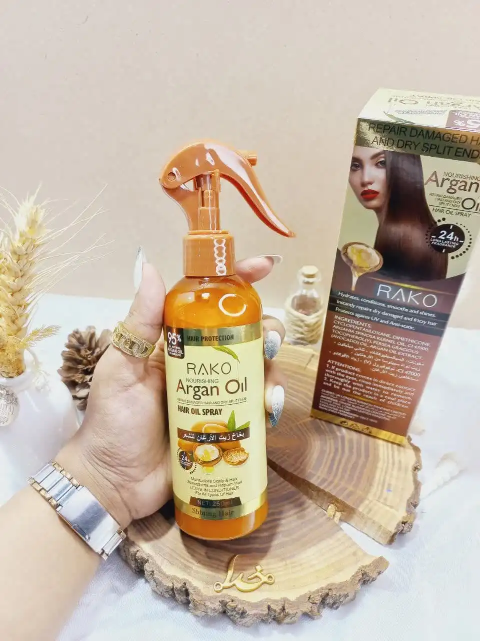 اسپری دو فاز مدل روغن آرگان Argan oil حجم 250 میل برند راکو RAKO اصلی کد RK1048