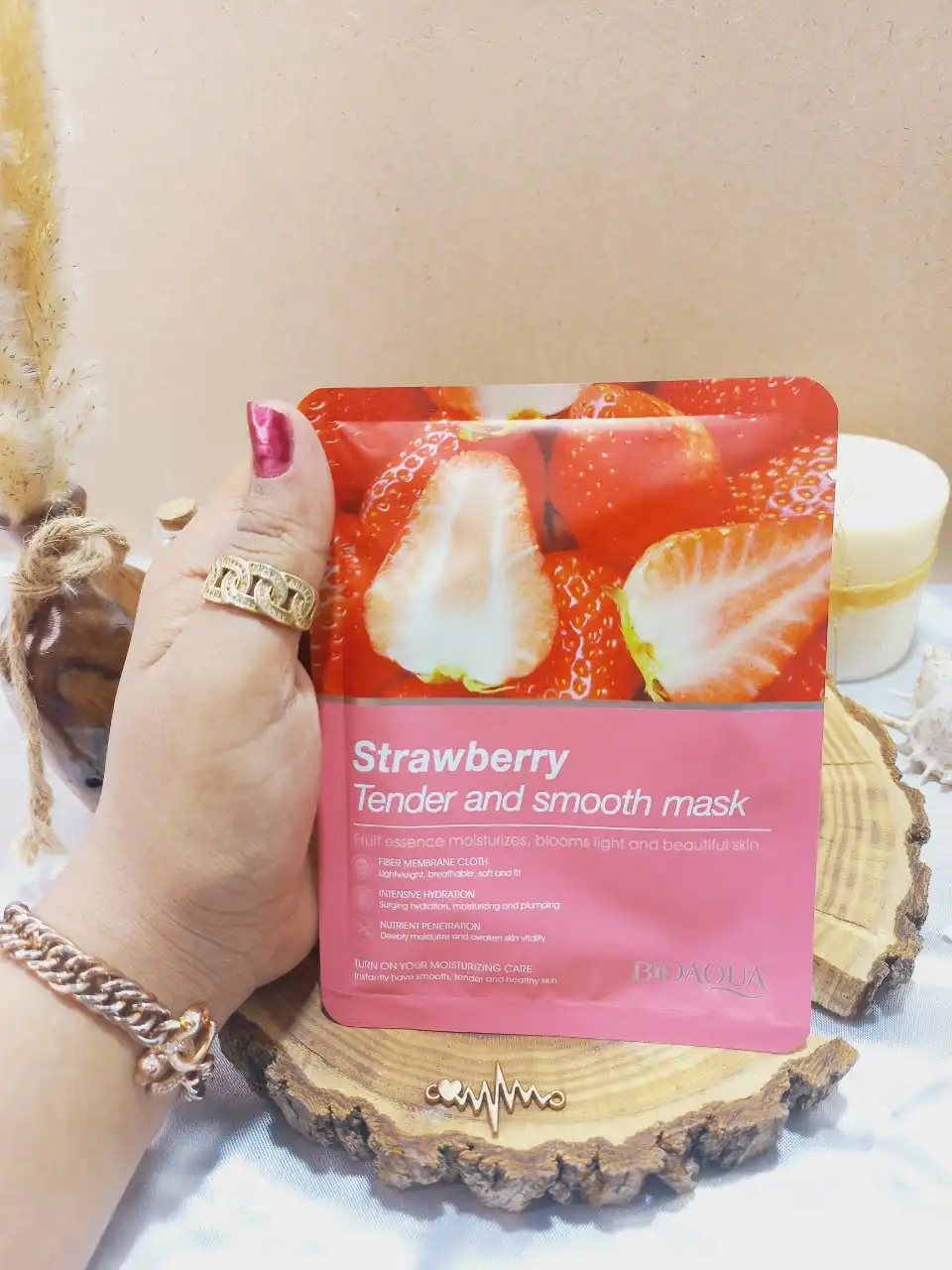 ماسک ورقه ای ضد چین و چروک روشن و سفت کننده پوست توت فرنگی بیوآکوا BIOAQUA کد BQY81235