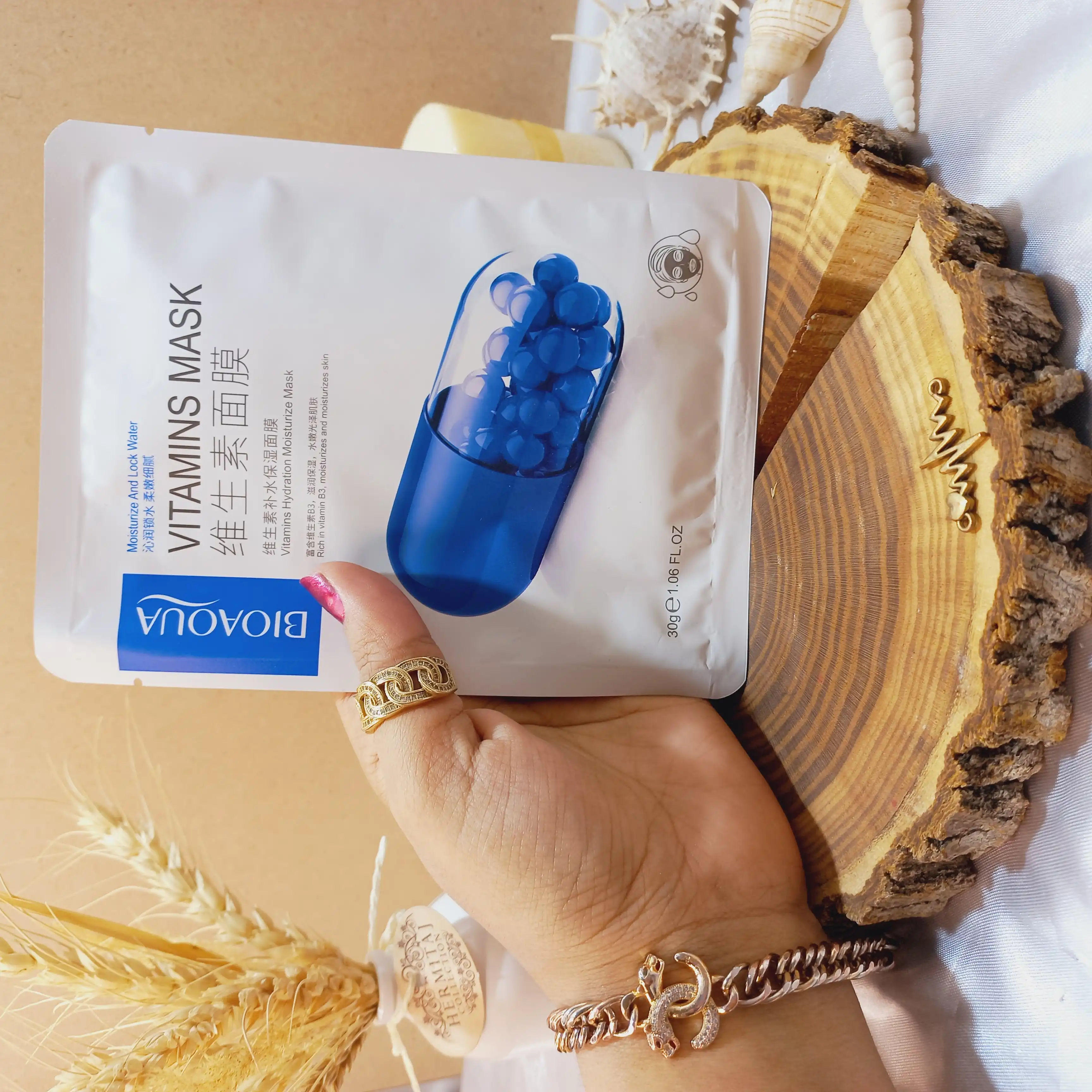 ماسک ورقه ای ویتامین کپسول آبی 30گرمی بیوآکوا BIOAQUA کد 67376 | پخش عمده